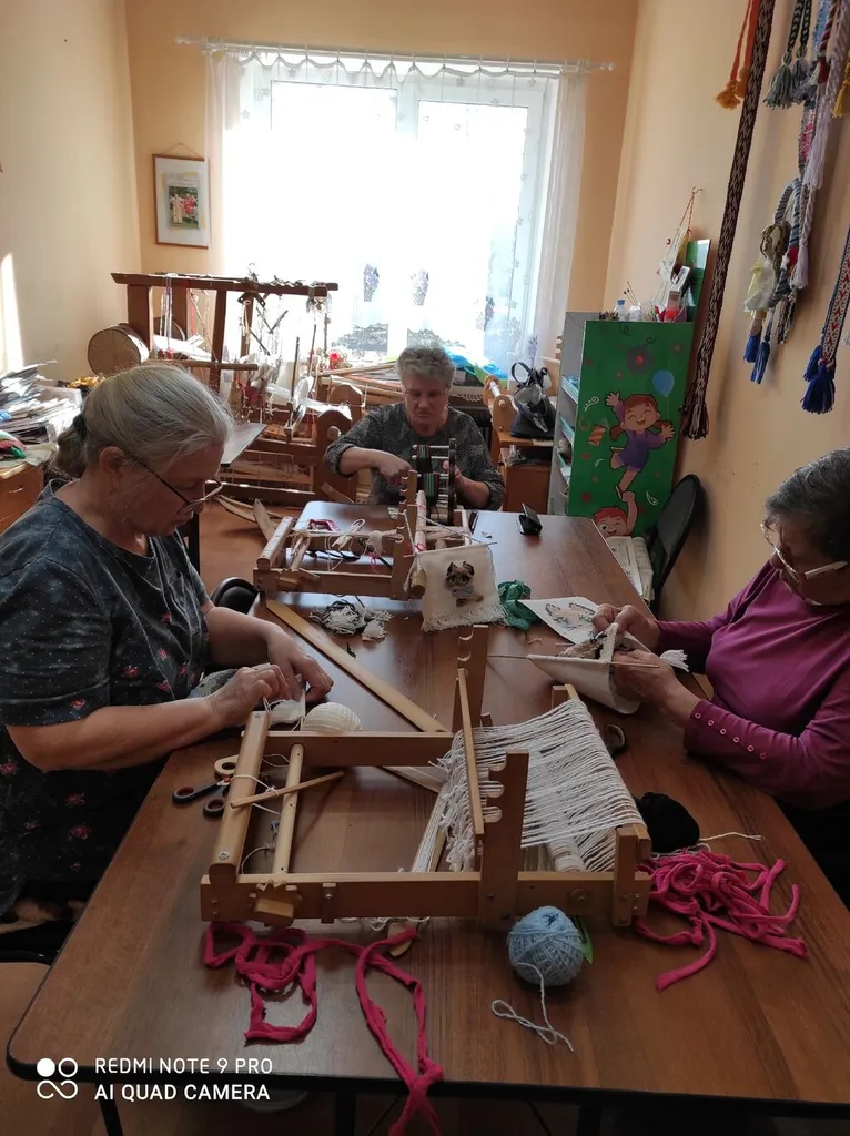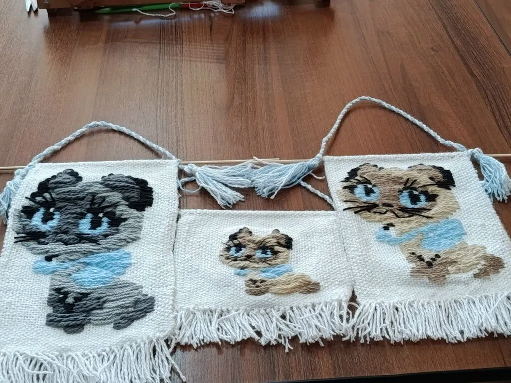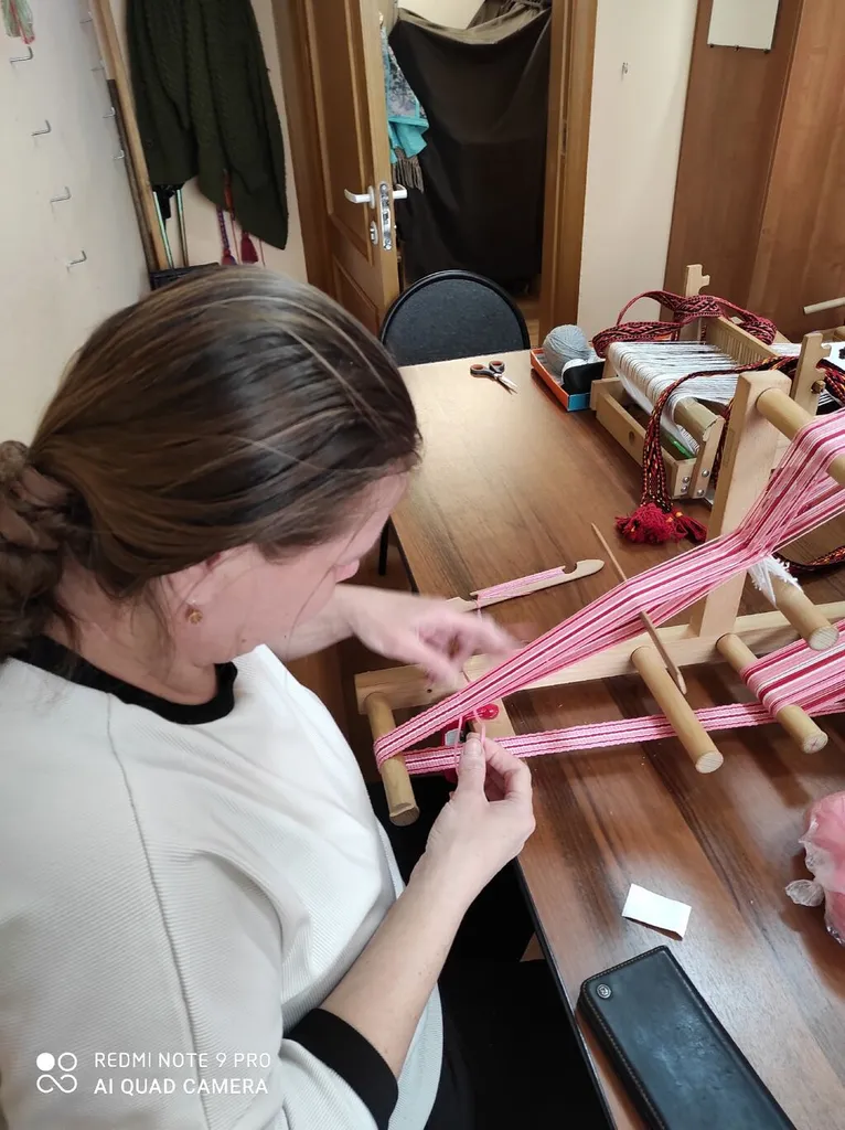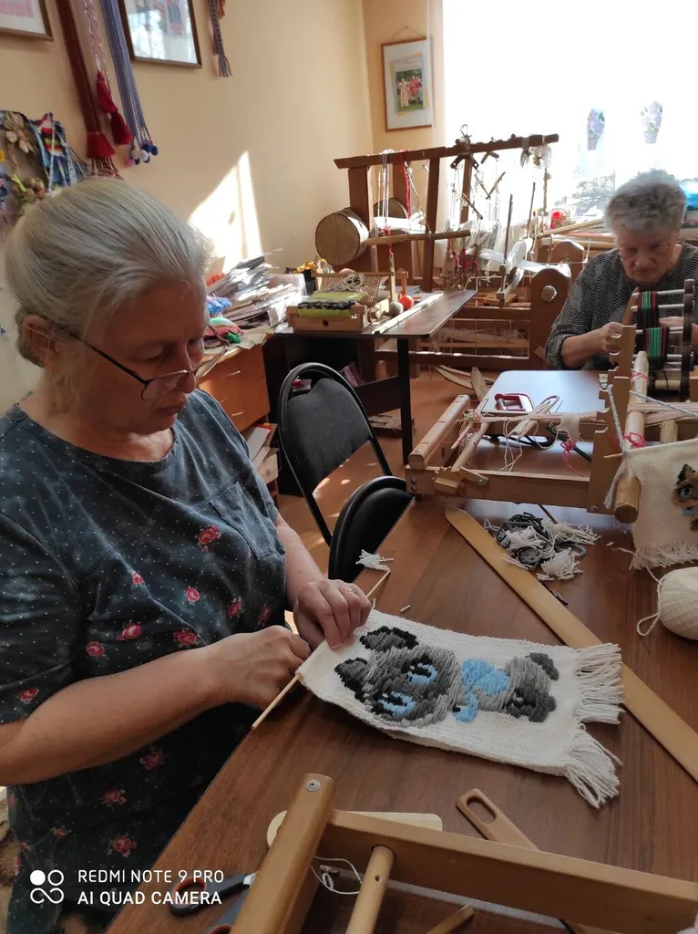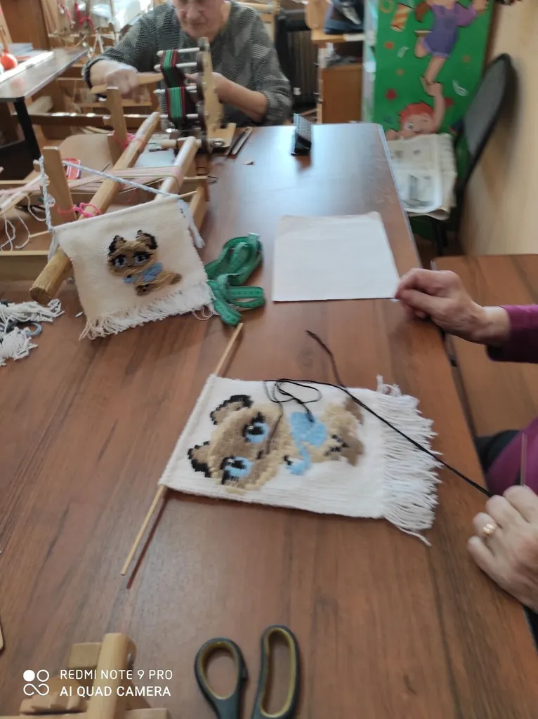 В народной студии по ткачеству "Узоры" каждый занят своим делом. Кто-то затеял пояс, кто-то салфетки, а у Надежды Степановны целая семейка котиков!