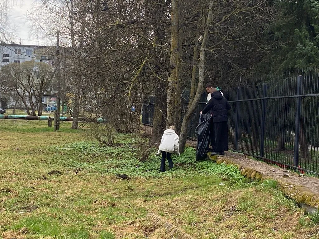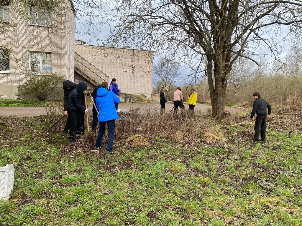 Ребята убрали мусор, собрали прошлогоднюю листву и привели территорию в порядок.