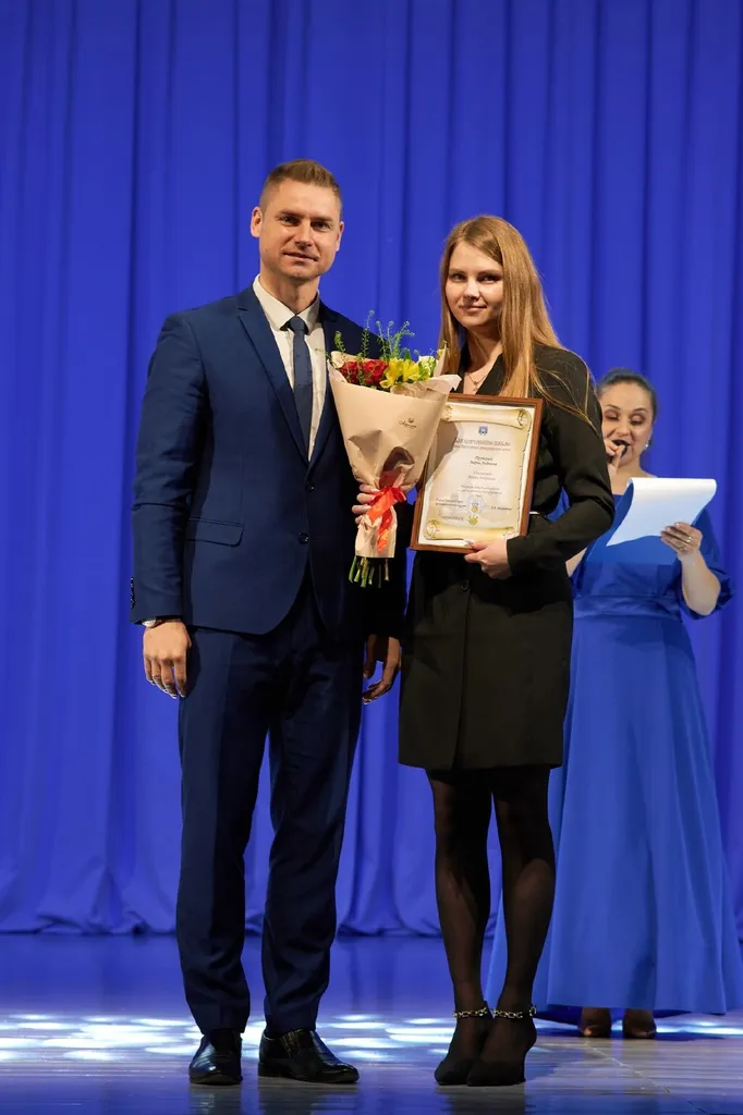 Ведущая праздничного мероприятия, посвященного Дню местного самоуправления Новгородского муниципального округа - наш методист Зуева Надежда Юрьевна